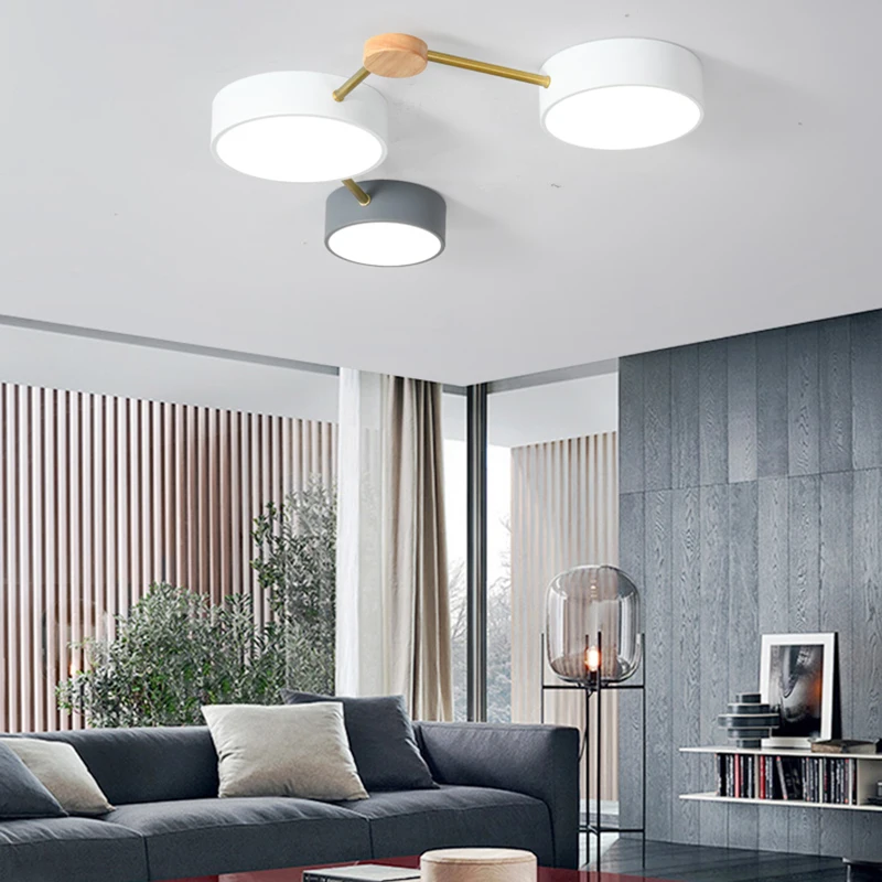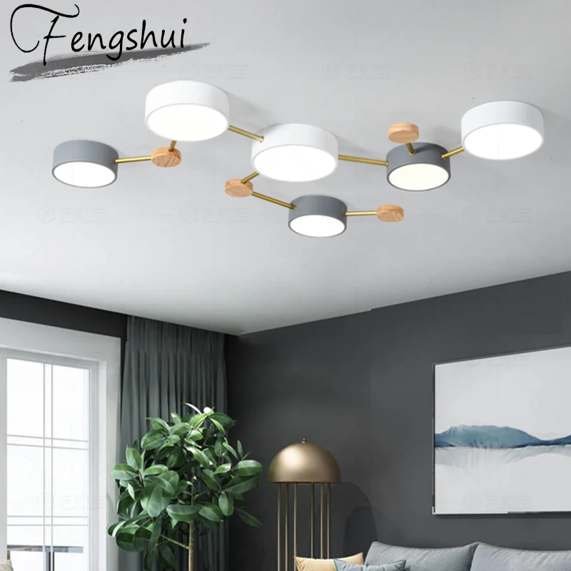 Nordic Ins Iron Acrylic Wood LED Ceiling Lighting Dimmable Ceiling Light Fixture Indoor Decor Livin