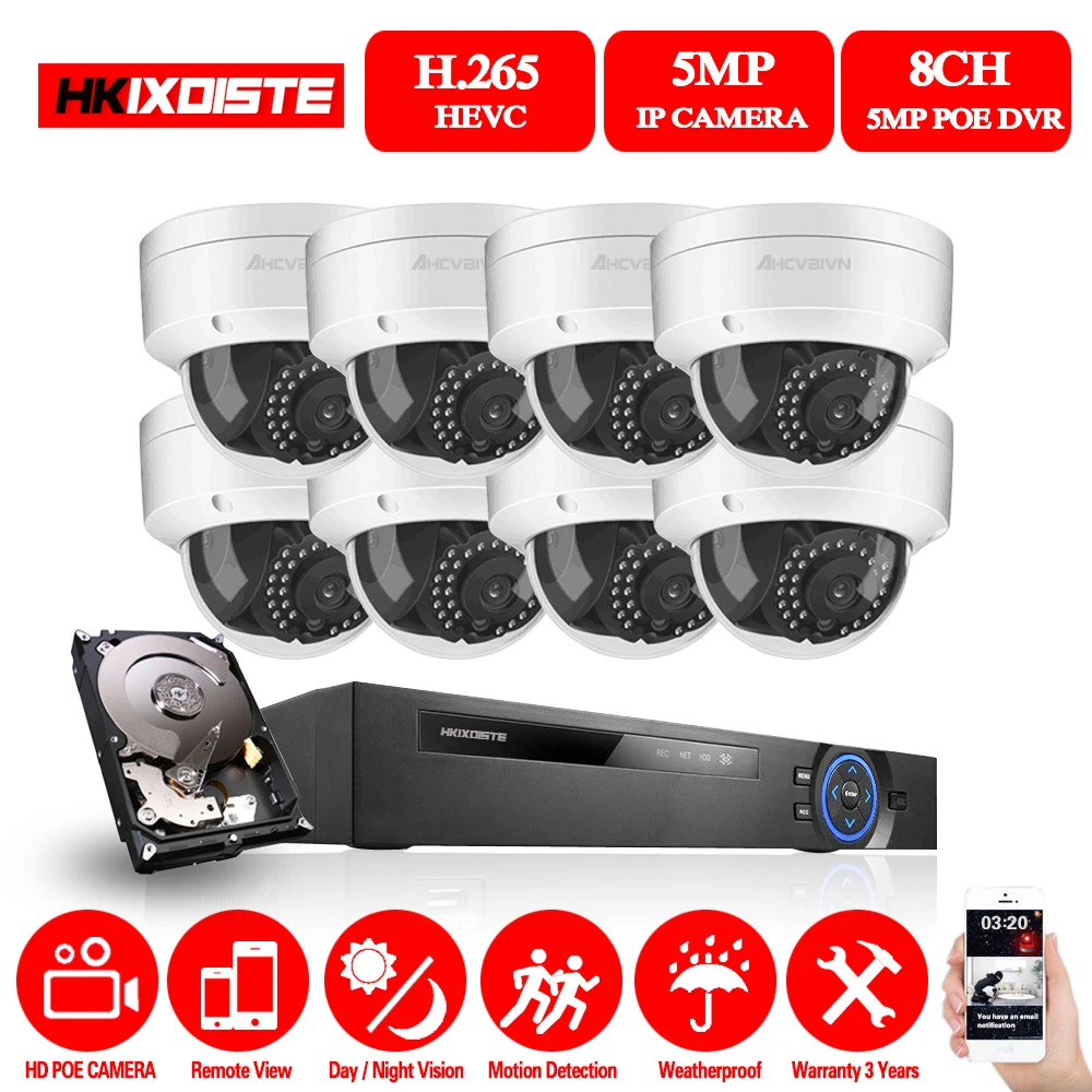 HD 8CH NVR 5.0MP POE CCTV camera System Kit 5MP Indoor Outdoor Waterproof IP Camera POE home securi
