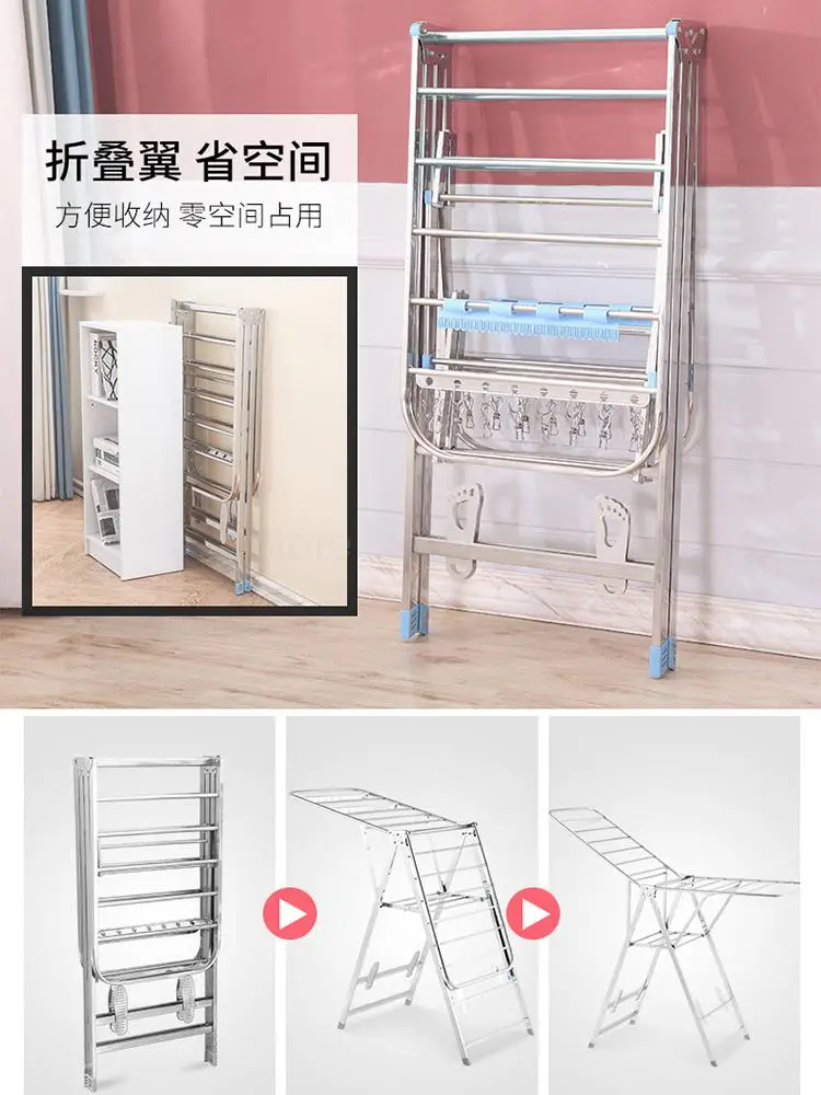 ORIGINAL Stainless steel drying rack floor folding indoor household cool drying rack balcony simple children