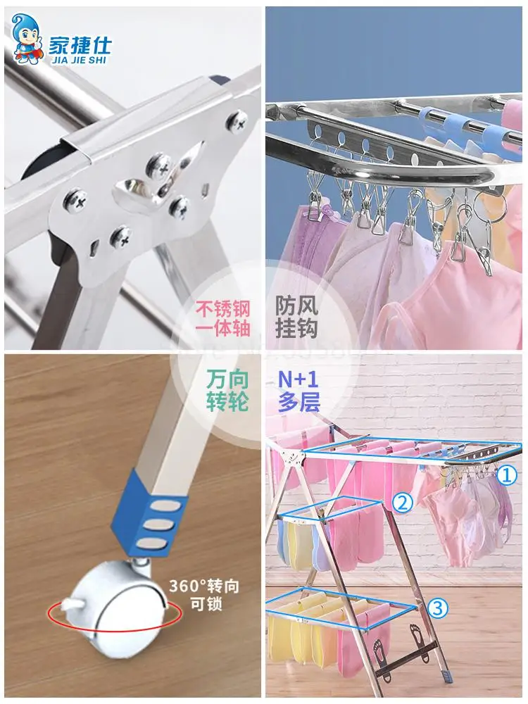 Stainless steel drying rack floor folding indoor household cool drying rack balcony simple children