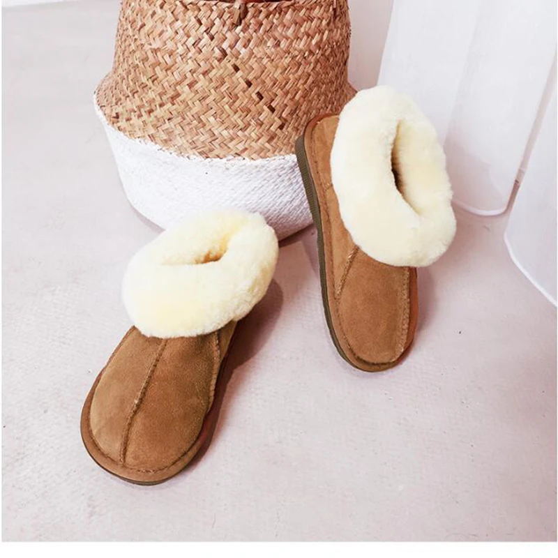 BEST Sheepskin wool one Home slippers keep warm flat shoe new fashion women Cotton slippers soft bottom