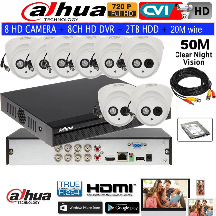 DAHUA 720P IR50M IP67 Waterproof indoor camera HAC-HDW1020E CVI Dome camera 8CH DHI-XVR4108HS camer