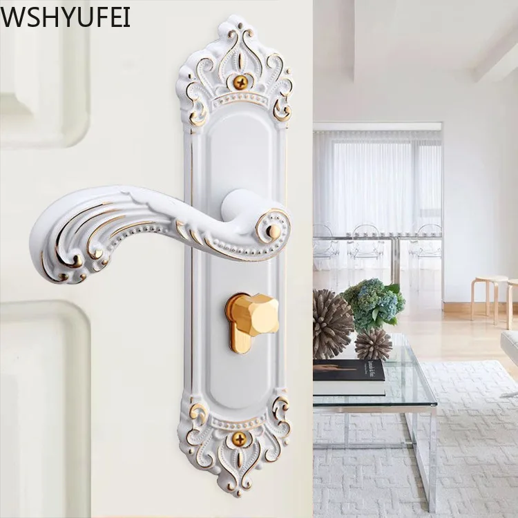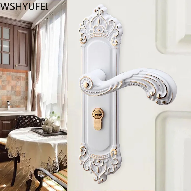 European handle lock porcelain white mute indoor Universal solid wood room door bedroom door lock N